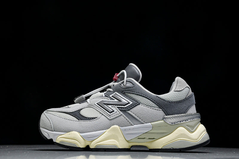 The New Balance 9060 Kids in Dark Gray/Light Gray brings the iconic 9060 silhouette to little feet with a practical, child-friendly design. Featuring a modern chunky profile inspired by retro running heritage, this kids’ version combines breathable mesh, durable synthetic overlays, and a clean grey palette for an effortlessly cool everyday look. The easy magic button (hook-and-loop) closure ensures quick on-and-off wear—perfect for active kids and busy parents.