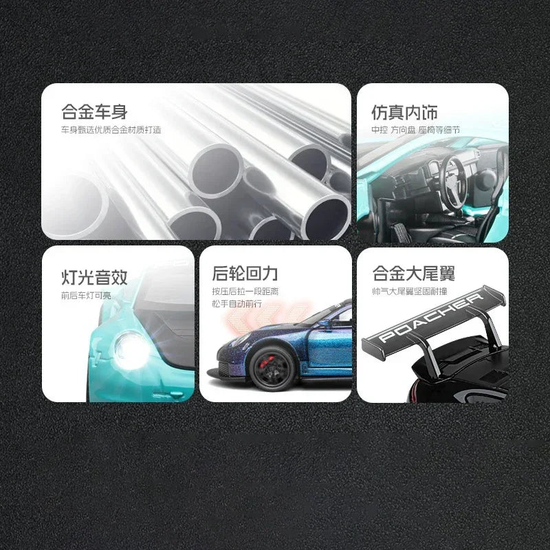 1:32 Porsche 911 GT3 RS – Diecast Alloy Model Car with Sound & Light