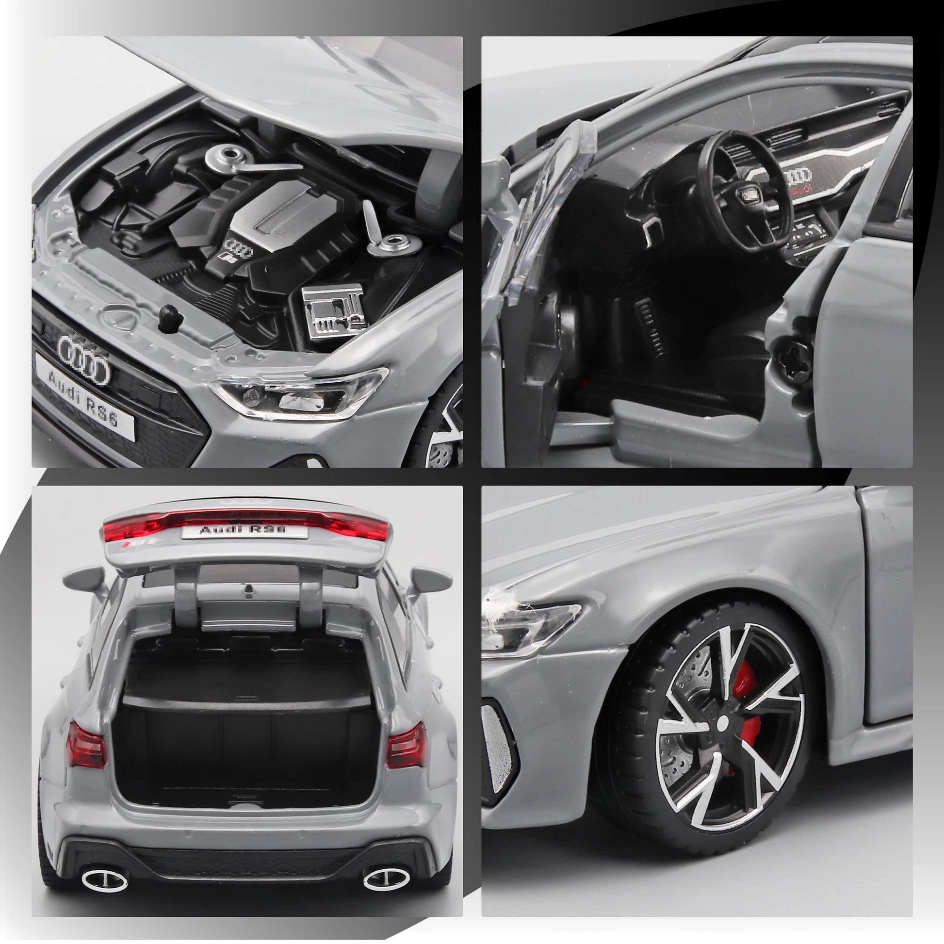 • Authentic 1:32 Scale – Realistic replica of the RS6 Black Edition.