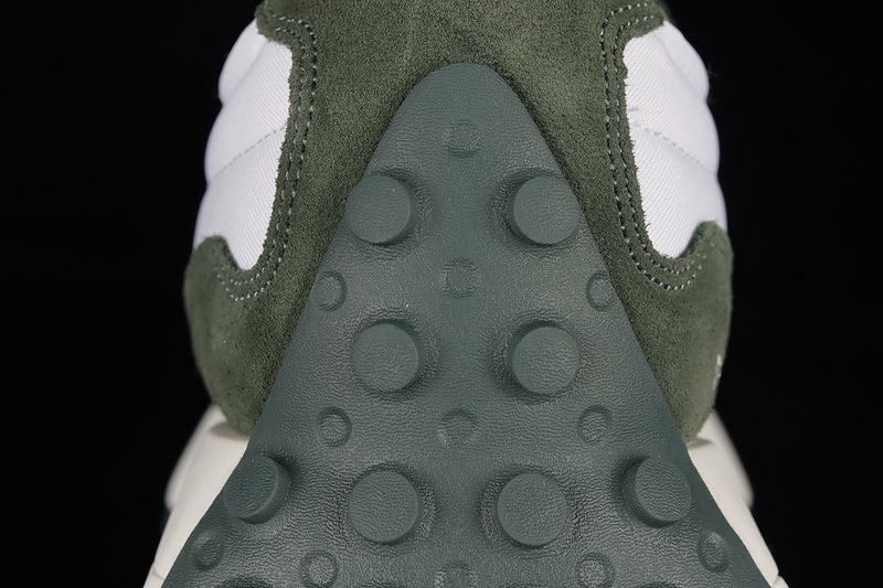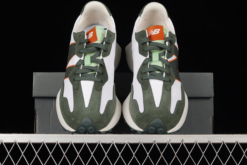 The New Balance 327 in Dark Green/White/Orange delivers a bold retro-sport look with striking contrast. Featuring a rich dark green upper, crisp white accents, and vibrant orange detailing, this pair stands out with its oversized “N” logo and rugged trail-inspired outsole—perfect for street style and everyday comfort.