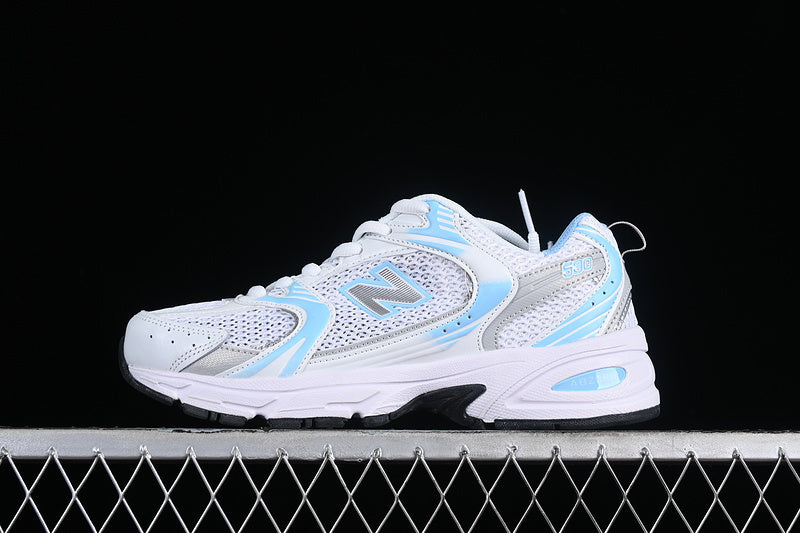 The New Balance 530 in White/Blue Haze/Brighton Grey blends airy freshness with cool, muted contrast. In a soft tri-tone palette, itโs the perfect everyday sneaker for relaxed elegance and legendary comfort.