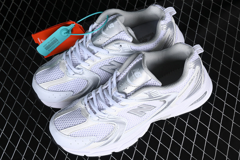 The New Balance 530 in White/Grey/Silver combines clean minimalism with subtle metallic sheen. In a refined tri-tone palette, itโs the perfect everyday sneaker for sleek versatility and legendary comfort.