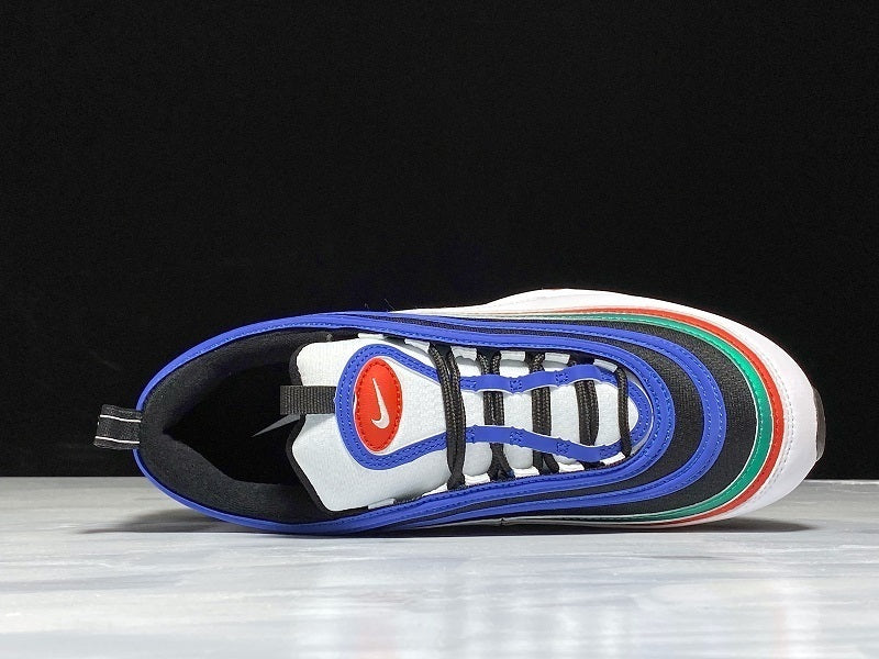 The Nike Air Max 97 in White/Hyper Blue-Multi-Color offers a vibrant, dynamic take on the iconic silhouette. Combining premium design with a bold multi-color palette, itโs the perfect everyday sneaker for style and comfort.