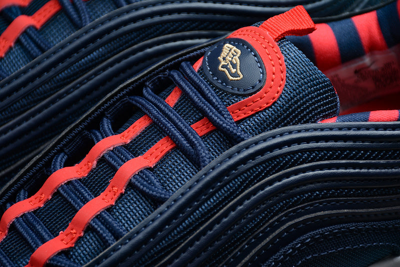The Nike Air Max 97 Golf Wing It in Navy Blue/Red/White offers a stylish, sporty twist on the iconic silhouette, tailored for the golf course. Combining premium design with a vibrant tri-color palette, it’s the perfect footwear for style and performance.