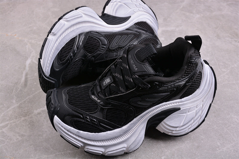 The Balenciaga Track Sneaker in Black/White delivers a bold, technical silhouette that blends high-fashion design with an aggressive outdoor-inspired aesthetic. Characterized by its complex, layered construction and dynamic shape, this model stands out with strong visual depth and a futuristic edge. The contrast between deep black tones and crisp white details enhances its structured look, making it a statement sneaker for contemporary urban styling.
